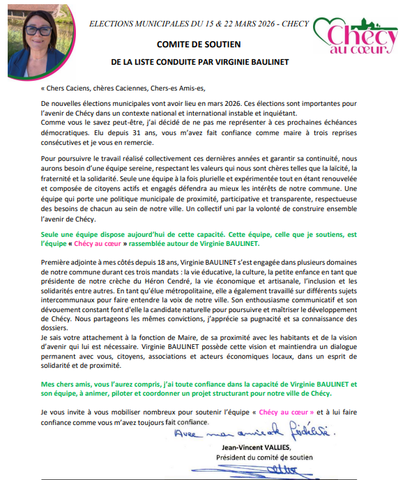 Jean-Vincent Valliès, maire de Chécy, soutient la liste Chécy au coeur.
